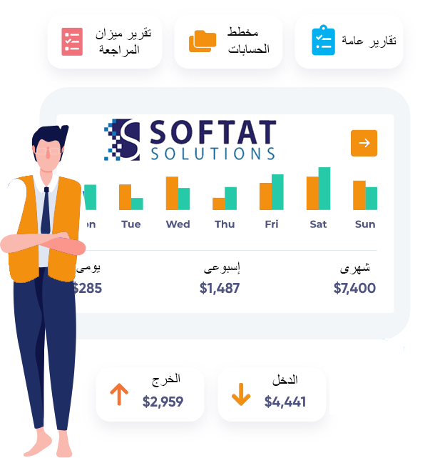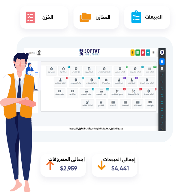تعتبر البرامج المقدمة من سُوفْتَاتْ برامج متكاملة تساعدك فى إدارة كل جوانب اعمالك بسهولة ويسر مع واجهة مستخدم سهلة وبسيطة وتدعم اللغة العربية والانجليزية والتى تمكنك من إدارة دورة العمل لديك بشكل أمن وسهل كما يمكنك تخصصيص البرامج بما يناسبك وتغطى الشركة أكثر من 50 نشاطا مختلفا.